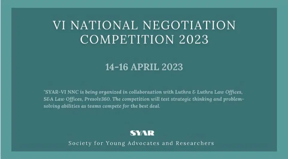 SYAR India invites experienced professionals, academicians, and ADR practitioners to join us as assessors for this year’s event. If you have expertise in dispute resolution, negotiation, or mediation, and a passion for guiding students, this is a unique opportunity to contribute to the growth of future lawyers.