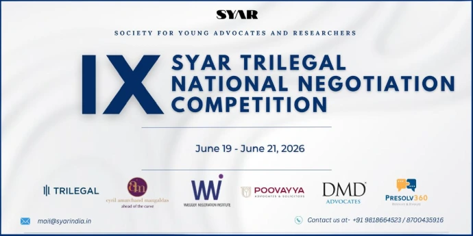 The Society for Young Advocates and Researchers is pleased to announce the IX SYAR-Trilegal Negotiation Competition, 2026.
