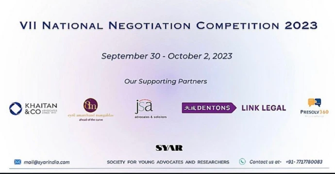The inaugural SYAR Negotiation Competition set the benchmark, welcoming law students from across India to compete, learn, and explore negotiation strategies in a friendly, yet challenging environment.